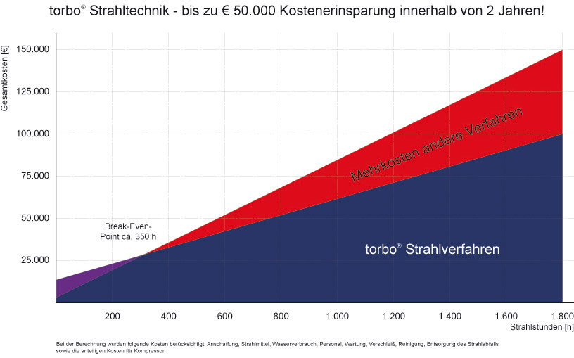 - bis 60% weniger Strahlmittel